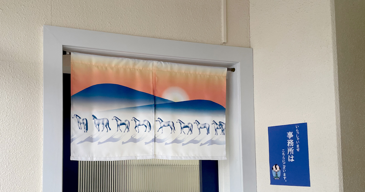 事務所入り口の暖簾が2026年の干支のれんになりました。